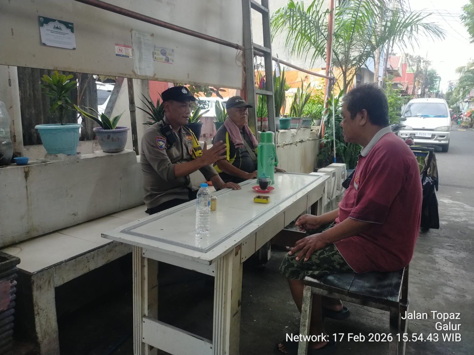 Kegiatan berlangsung di Jl. Topaz RT 005/02, Kelurahan Galur, Kecamatan Johar Baru, Jakarta Pusat. Aiptu Baktiar selaku Bhabinkamtibmas Kelurahan Galur bergabung bersama Ketua RT 005/02, Bapak Ujang, serta warga setempat dalam suasana penuh keakraban dan dialog interaktif.