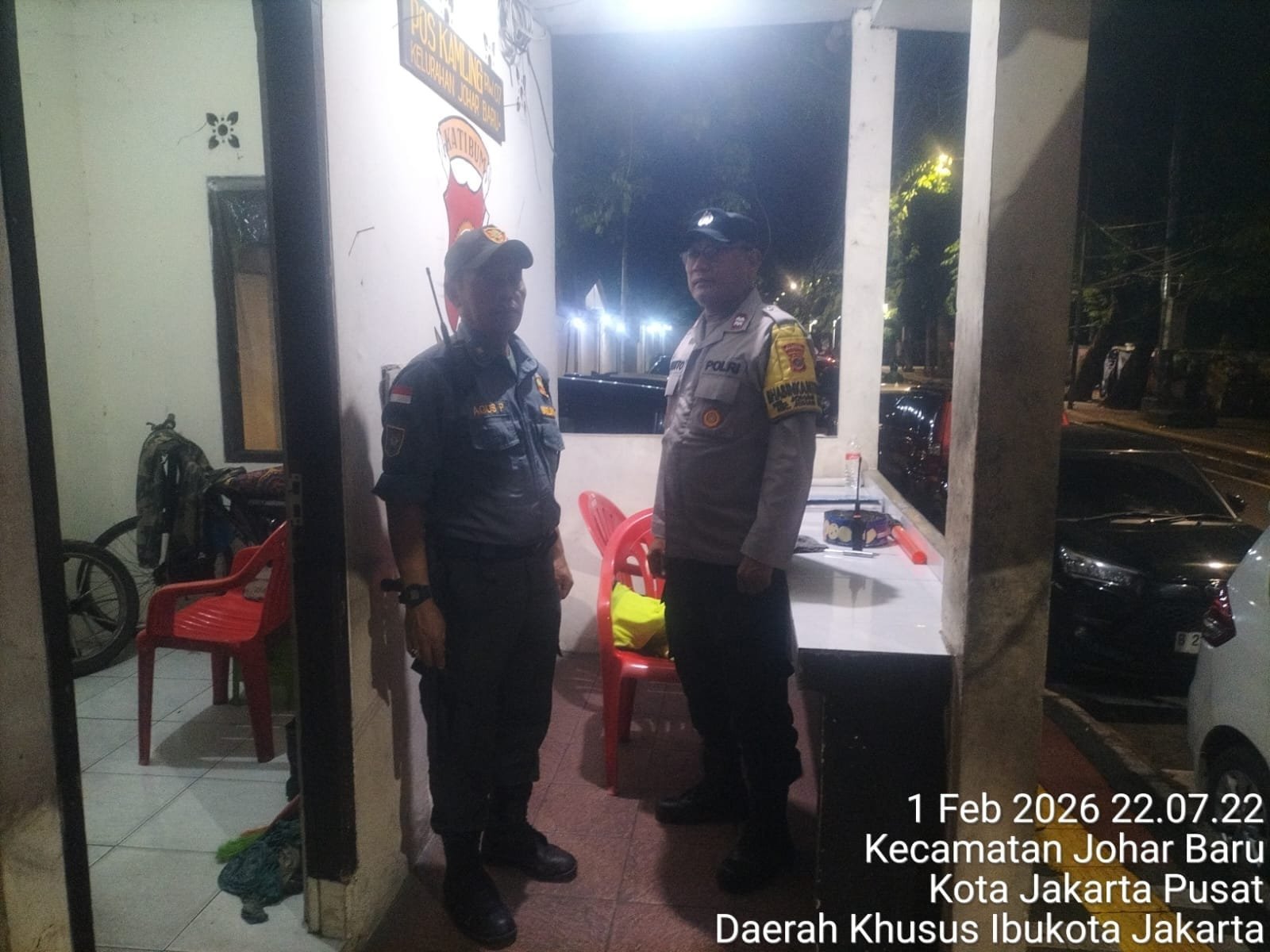Jakarta Pusat — Upaya menjaga keamanan lingkungan terus dilakukan jajaran Polsek Johar Baru melalui pendekatan preventif dan humanis. Bhabinkamtibmas Kelurahan Johar Baru Aiptu Sunarto melaksanakan sambang dan cooling system di Pos Kamling RW 07, Jalan Percetakan Negara II, Kelurahan Johar Baru, Jakarta Pusat, Senin (2/2/2026) dini hari.