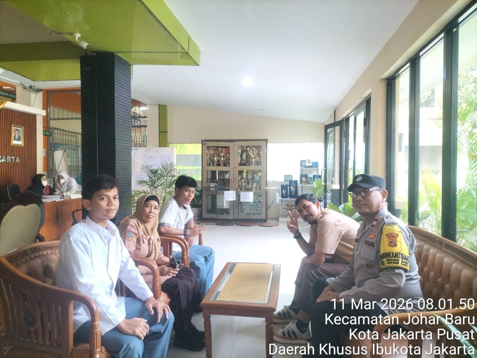 Dalam kegiatan tersebut, Bhabinkamtibmas Kelurahan Johar Baru Aiptu Sunarto bertemu dengan Kepala Kesiswaan SMK N 31 Jakarta, Ibu Puji. Pertemuan ini dilakukan sebagai bentuk sinergi antara kepolisian dan pihak sekolah dalam menjaga keamanan lingkungan serta mencegah potensi kenakalan remaja, khususnya tawuran pelajar.