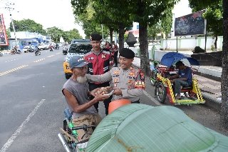 Sambil patroli dialogis untuk kamtibmas, anggota Polres Situbondo Polda Jatim itu membagikan ratusan nasi kotak kepada para pekerja jalanan di berbagai sudut Kota Situbondo.