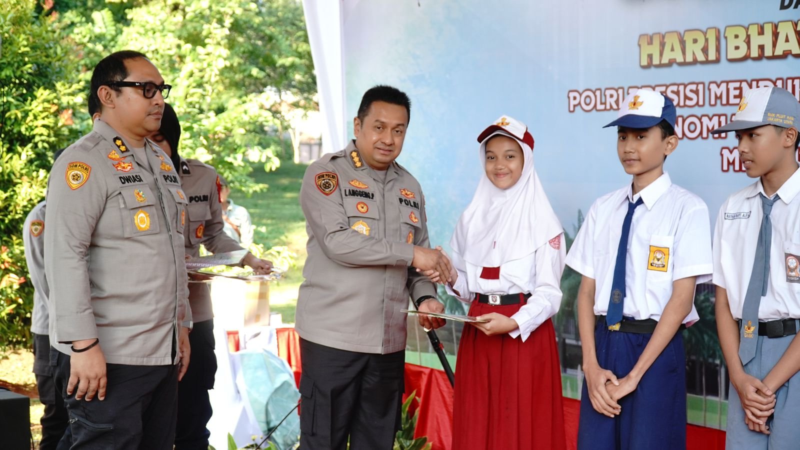 Selanjutnya diakhir acara Langgeng memberikan beasiswa kepada 3 Anak Asuh Polda Metro Jaya dari siswa SD, SMP dan SMK yang berprestasi.