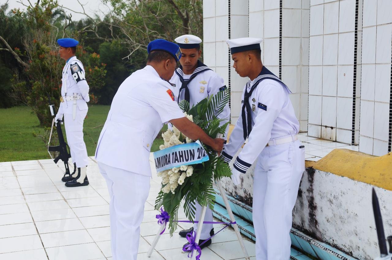 TNI AL, Dumai,- Komandan Pangkalan TNI AL Dumai diwakili oleh Dandenpomal Mayor Laut (PM) Syaparudin pimpin Ziarah Rombongan dalam rangka menyambut Hari Dharma Samudera Tahun 2024 yang dilaksanakan di Taman Makam Pahlawan (TMP) Damai Sentosa, Jalan Soekarno Hatta, Bukit Batrem, Kecamatan Dumai Timur, Kota Dumai, Jum’at (12/01/2024).