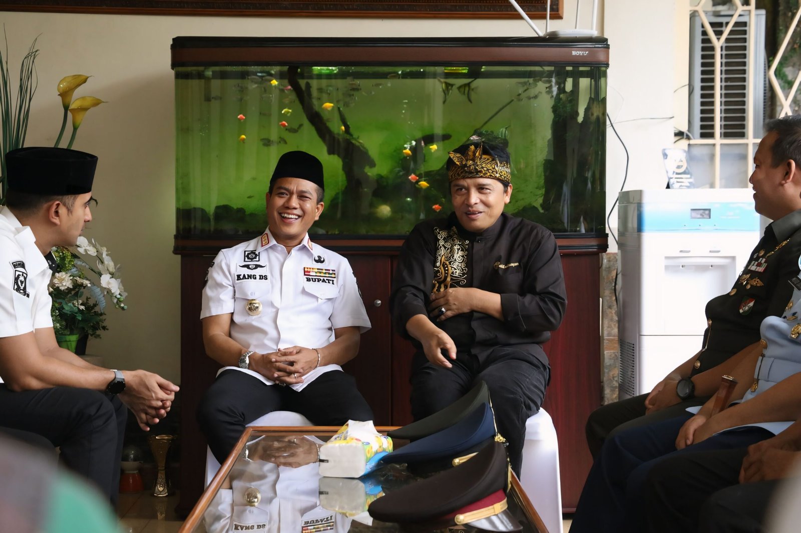 Pertemuan dua pemimpin di era-nya masing-masing itu, Dadang Supriatna didampingi Wakil Bupati Bandung Ali Syakieb saat mendatangi rumah mantan Bupati Bandung Dadang M. Naser di Jalan Raya Laswi Kecamatan Ciparay Kabupaten Bandung, Selasa (15//4/2025).