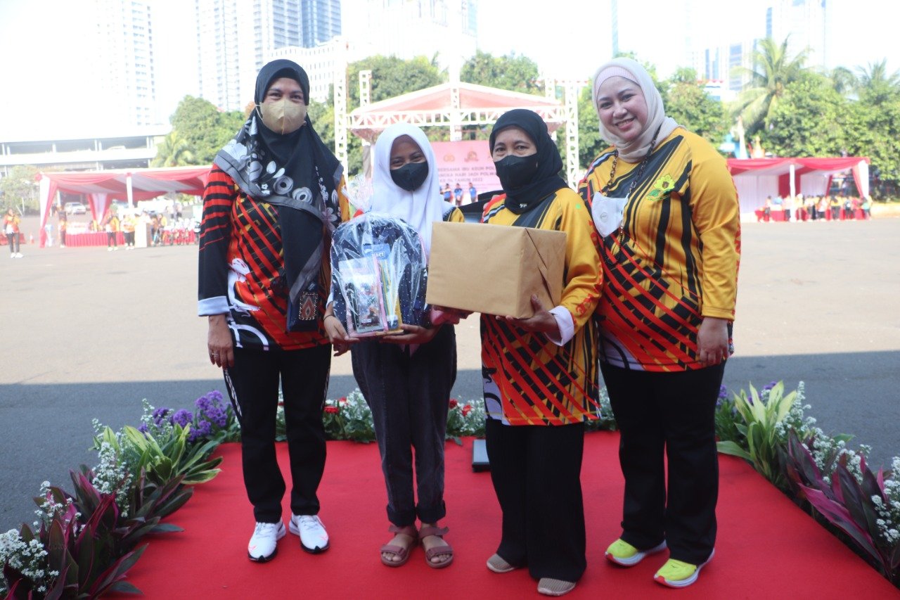 Jakarta – Bertempat di Lapangan Presisi Ditlantas Polda Metro Jaya, personel Polwan Polda Metro Jaya melaksanakan olahraga bersama sekaligus pembagian sembako serta paket alat sekolah dalam rangka HUT Ke-74 Polisi Wanita (Polwan), Minggu (14/08).