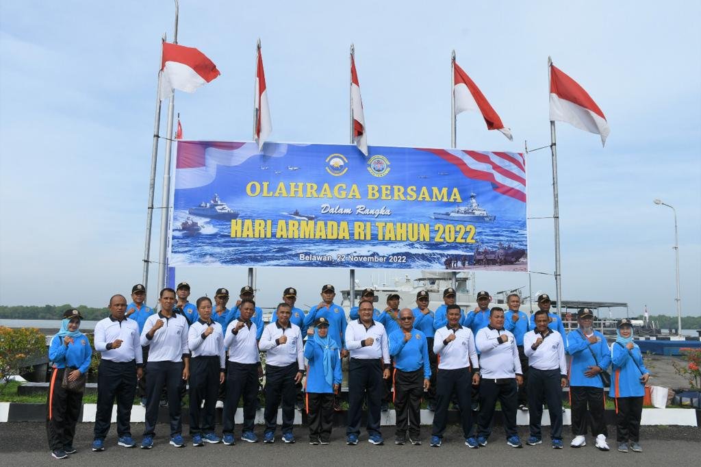 TNI AL, Lantamal I Belawan,- Dalam rangka menyambut peringatan Hari Armada RI Tahun 2022 yang jatuh pada tanggal 5 Desember mendatang, Lantamal I Belawan menggelar olahraga bersama, bertempat di Lapangan Apel Markas Komando Lantamal I, Selasa (22/11/2022).