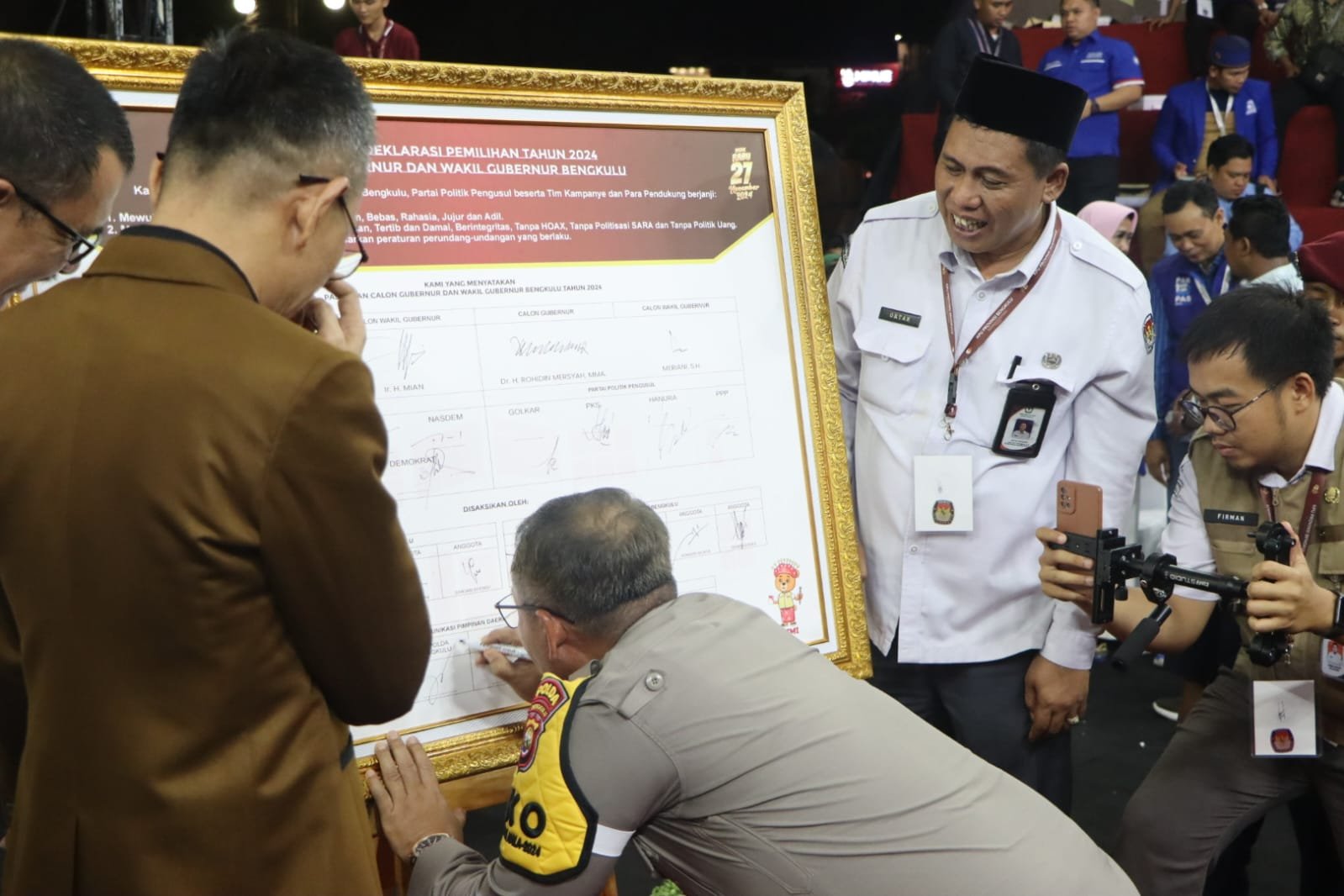Penghujung acara dilaksanakan Deklarasi Kampanye Damai dalam Pemilihan Gubernur dan Wakil Gubernur Provinsi Bengkulu Tahun 2024 dengan diikuti oleh tanda tangan oleh kedua Paslon Gub dan Wagub serta Kapolda Bengkulu dan seluruh stakeholder.