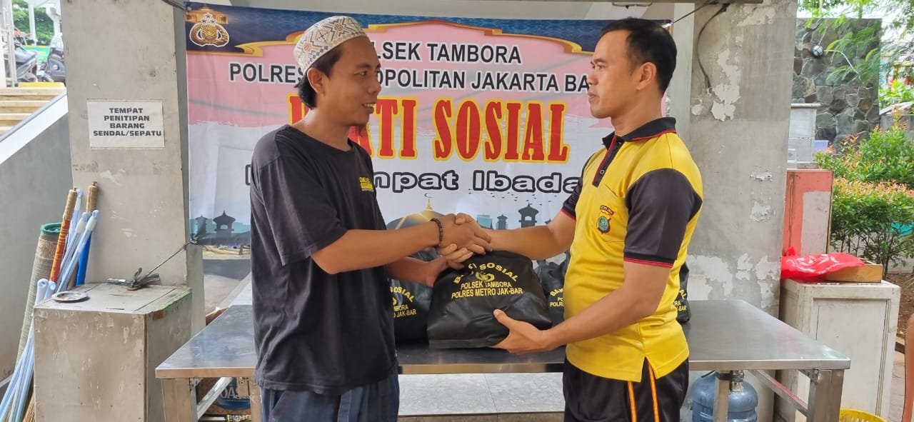 Selain bersih-bersih Masjid pihak Polsek Tambora juga memberikan paket sembako kepada Marbot Masjid sebagai wujud kepedulian pihak kepolisian terhadap marbot-marbot Masjid.