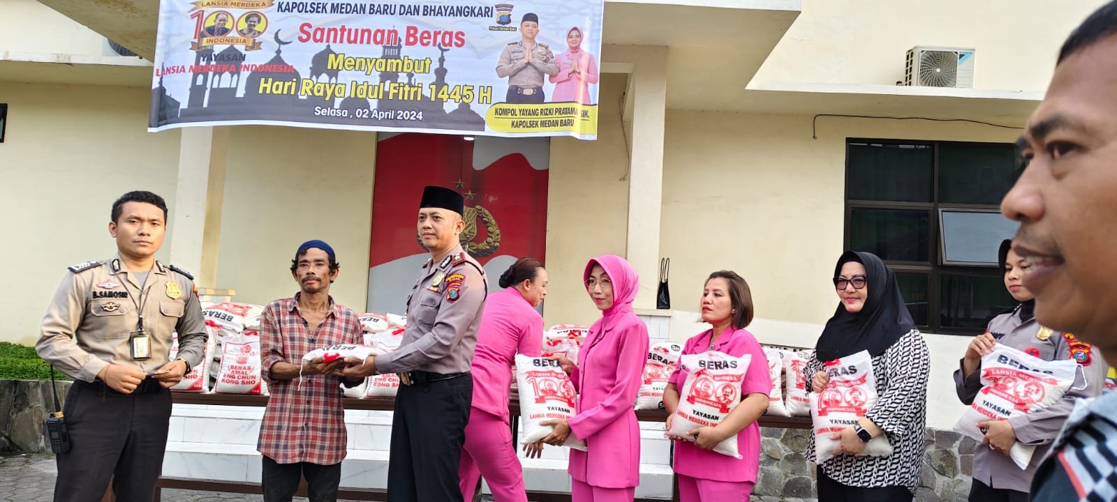 Dalam rangka bulan suci Ramadhan dan menyambit Idul Fitri 1445 H, Yayasan Lansia Merdeka Indonesia (LMI) membagikan sebanyak 600 paket beras kepada para penarik becak bernotor di kota Medan.