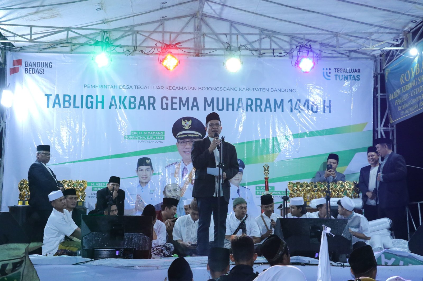 KAB. BANDUNG – Dalam rangka menyambut Tahun Baru Islam 1 Muharram 1446 Hijriah, Bupati Bandung HM. Dadang Supriatna hadir di tengah-tengah masyarakat dalam kegiatan “Tabligh Akbar Gema Muharram” yang diinisiasi Pemerintah Desa Tegalluar Kecamatan Bojongsoang Kabupaten Bandung, Sabtu (6/7/2024) malam.