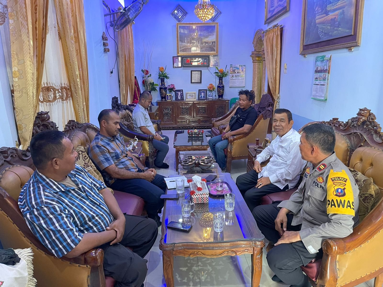 Kasat Binmas Polres Sibolga mengunjungi Ketua FKUB Kota Sibolga beserta warga lainya selaku Tokoh Masyarakat, menyampaikan pesan-pesan Kamtibmas mengimbau agar selalu menjaga situasi Kamtibmas yang kondusif di Kota Sibolga menjelang Pilkada Serentak 2024 di Kota Sibolga.