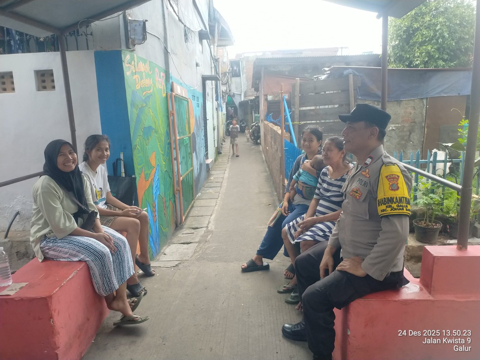 Jakarta Pusat — Dalam rangka menjaga situasi keamanan dan ketertiban masyarakat (kamtibmas) tetap aman dan kondusif menjelang Natal 2025 dan Tahun Baru, Bhabinkamtibmas Kelurahan Galur Polsek Johar Baru melaksanakan kegiatan sambang dan cooling system kepada warga RW 04 Kelurahan Galur, Kecamatan Johar Baru, Jakarta Pusat, pada Kamis (24/12/2025) pukul 13.00 WIB.
