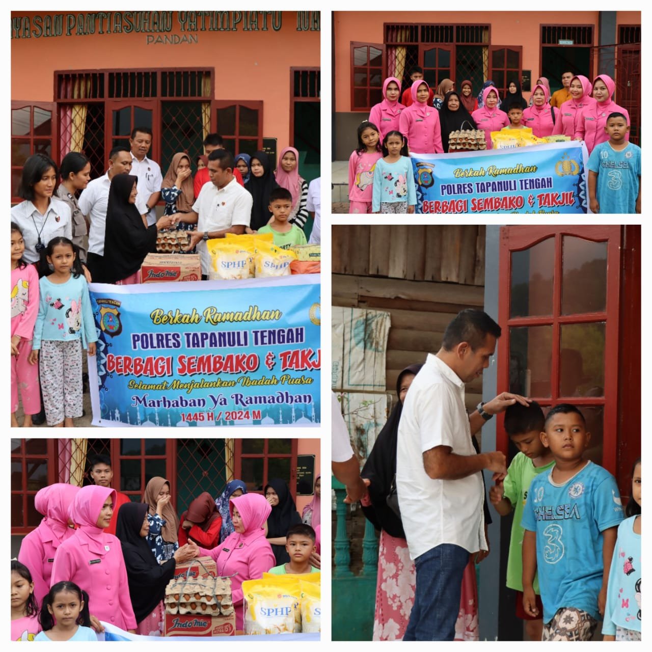 Tapteng – Dalam rangka kepedulian Polri terhadap sesama umat manusia, Satuan Reserse Kriminal (Sat Reskrim) Polres Tapanuli Tengah bagikan sembako dan takjil di Panti Asuhan Namira, Jalan Sutan Singengu, Kelurahan Pandan, Kecamatan Pandan, Kabupaten Tapanuli Tengah. Selasa, (02/04/2024) pukul 17.30 WIB.