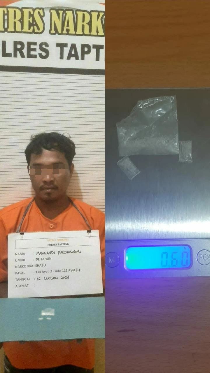 Kapolres Tapanuli Tengah AKBP Basa Emden Banjarnahor, SIK, MH melalui Kasat Narkoba Polres Tapteng AKP Juli Purwono, SH, MH menjelaskan bahwa kronologis penangkapan dimulai pada pukul 20.30 WIB, ketika pelapor bersama rekan pelapor mendapat informasi dari masyarakat. Setelah memastikan kebenaran informasi, tim melakukan pencarian dan berhasil mengamankan pelaku. Selanjutnya, dilakukan penggeledahan badan dan lokasi penangkapan, menemukan barang bukti narkotika jenis sabu di depan tempat pelaku duduk.