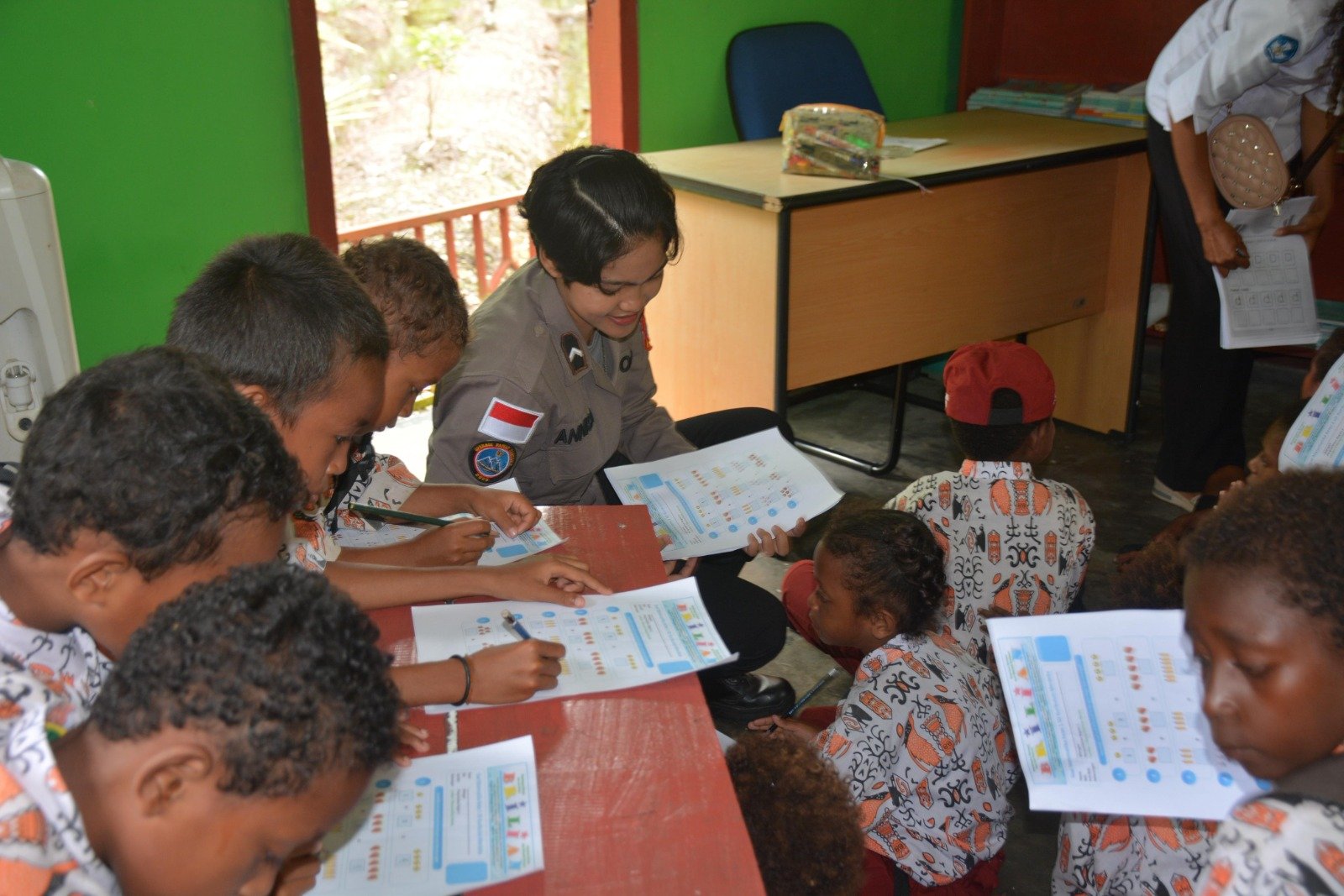 Selain itu, mereka juga mengajak anak-anak bernyanyi bersama untuk menciptakan suasana belajar yang lebih menyenangkan. Menurut Kompol Yusuf Tauziri, kegiatan ini merupakan bagian dari program bimbingan belajar yang rutin dilaksanakan di Rumah Pintar Aruka. Program ini merupakan hasil kerja sama antara PT Freeport Indonesia dengan Sekolah Dasar Tipuka untuk memberikan tambahan materi di luar jam sekolah.