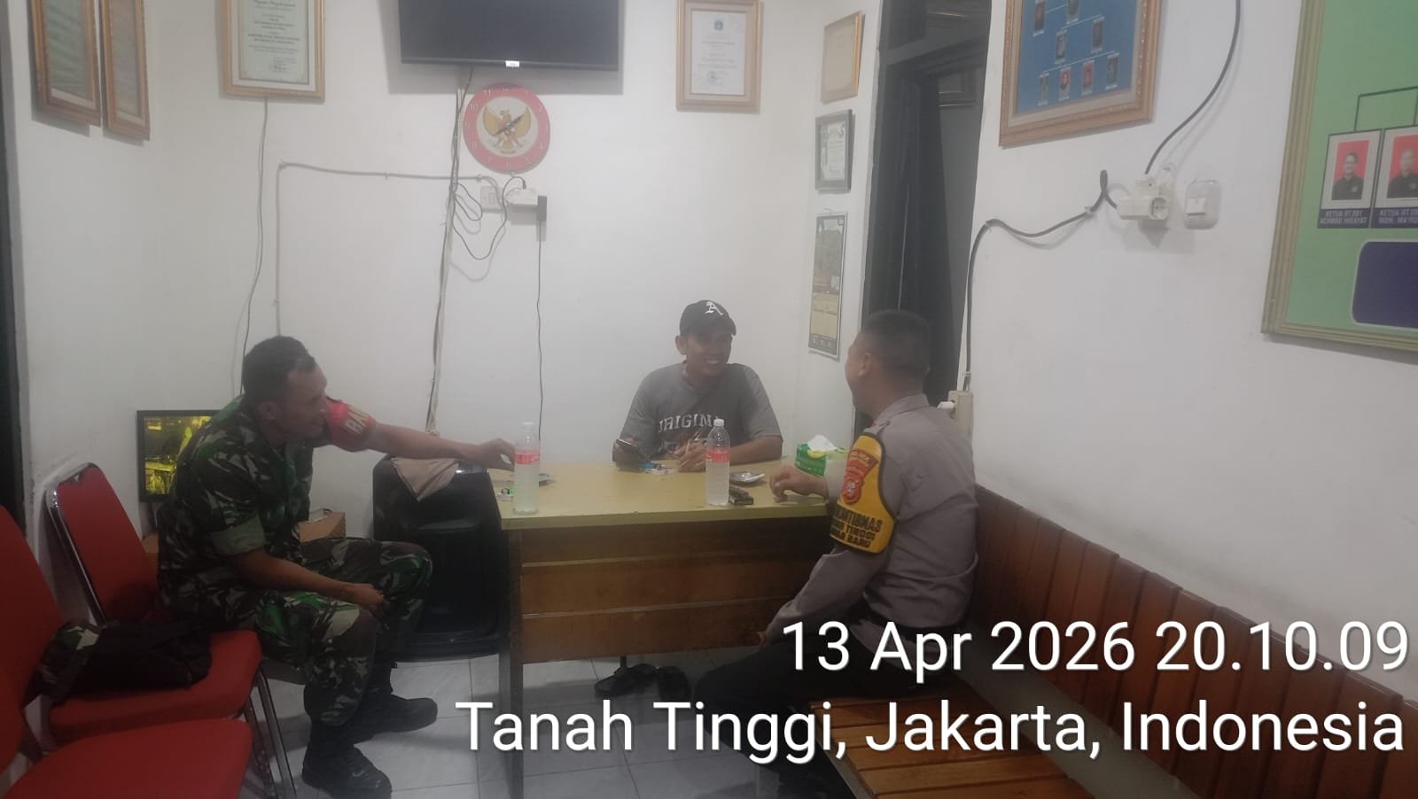 Kegiatan yang berlangsung pada Senin, 13 April 2026 pukul 19.30 WIB ini dilaksanakan di Kantor Sekretariat RW 08, Jl. Pulo Gundul RT 11/08. Pelaksana kegiatan yakni Aipda Tangguh selaku Bhabinkamtibmas Kelurahan Tanah Tinggi bersama Sertu Kader selaku Babinsa Tanah Tinggi.