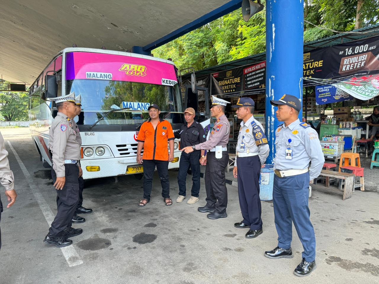 refubliknews.com, || Kediri Kota – Menjelang perayaan Natal dan Tahun Baru (Nataru) 2026, Satuan Lalu Lintas Polres Kediri Kota tancap gas memastikan seluruh transportasi bus berada dalam kondisi aman dan siap mengangkut lonjakan penumpang. Langkah tersebut diwujudkan melalui inspeksi kelayakan (ramcheck) armada bus di Terminal Baru Tamanan, Sabtu (6/12).