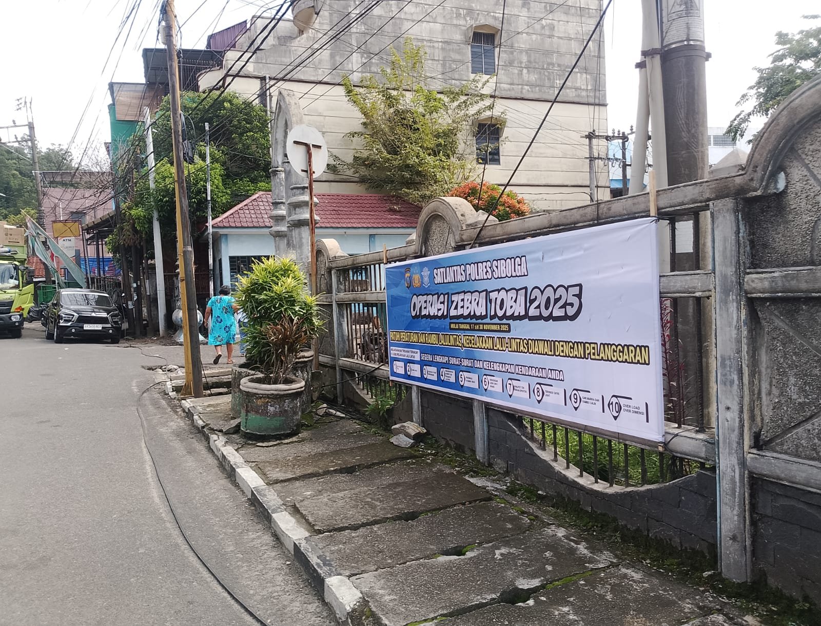 SIBOLGA Personel yang tergabung dalam satgas Operasi Zebra Toba 2025 Polres Sibolga hari ini memasang Spanduk tertib berlalu lintas, agar Masyarakat mengetahui Polres Sibolga sedang melaksanakan Ops Zebra Toba 2025, di Wilayah Hukum Polres Sibolga, Selasa (18/11/2025).