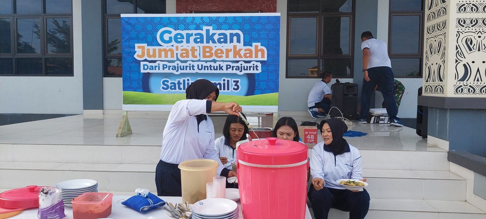 Program Jumat Berkah ini merupakan yang ketiga kalinya dilaksanakan di lingkungan Mako Satlinlamil 3 dengan tujuan agar mendapat berkah dan meningkatkan hubungan silaturahmi antara perwira dan anggota, serta antara sesama personel.