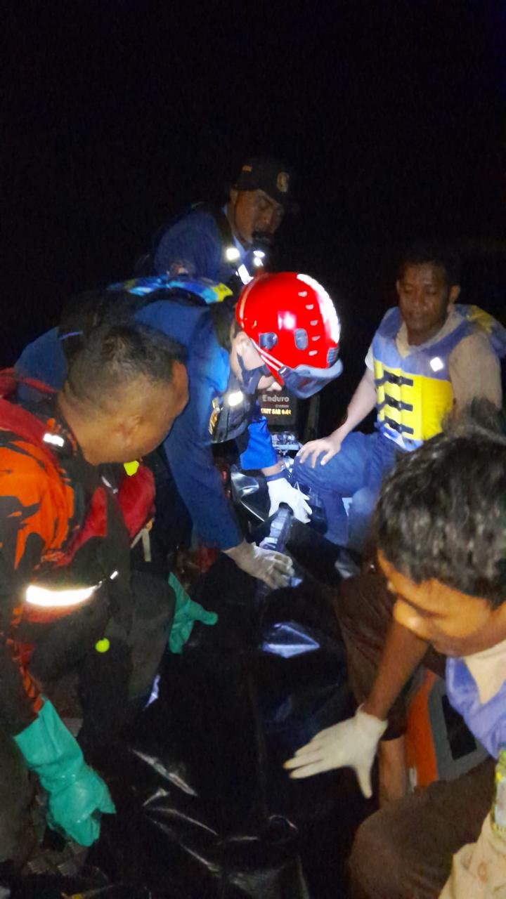 Tim SAR gabungan menemukan pemancing berusia 65 tahun yang dikabarkan hilang tenggelam dalam kondisi meninggal dunia tidak jauh dari lokasi awal tenggelam, pada Senin, 10 Juni 2024, petang.