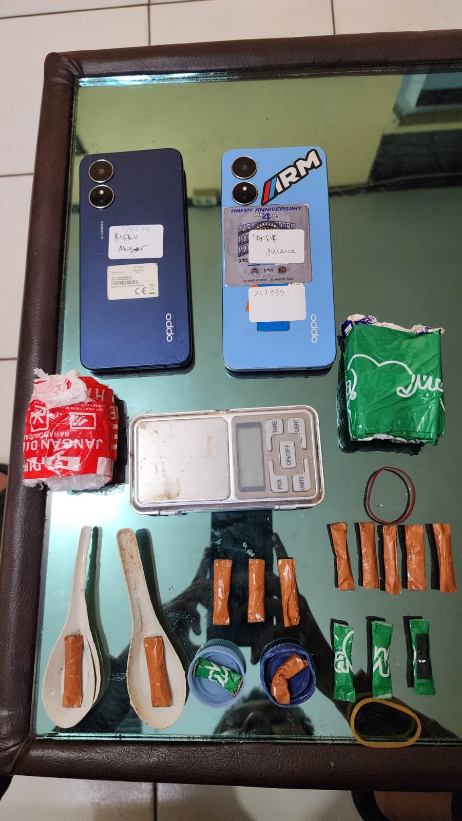 “Dari hasil penggeledahan ditemukan 8 paket kecil narkotika jenis sabu di dalam saku celana milik Kodok. Setelah dilakukan pendalamaman, kemudian di temukan kembali satu paket besar dan satu paket sedang narkotika jenis sabu didalam kamar mandi yang disimpan oleh RAS. Jadi anggota kami berhasil mengamankan narkoba jenis sabu dengan berat bruto 58,2 gram yang akan diedarkan pelaku,” ucap Yudi.