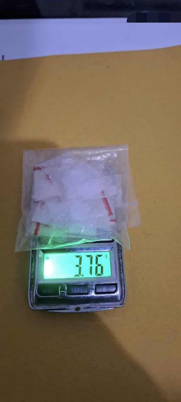 Dari hasil penggeledahan, petugas menemukan satu kotak rokok merek Dji Sam Soe yang di dalamnya terdapat satu plastik klip sedang berisi 16 paket klip merah berisikan serbuk kristal putih yang diduga narkotika jenis sabu dengan berat bruto 3,76 gram. Selain itu, turut diamankan satu buah pisau lipat serta uang tunai sebesar Rp165.000 yang ditemukan dari kantong celana tersangka dan diduga merupakan hasil transaksi narkotika.
