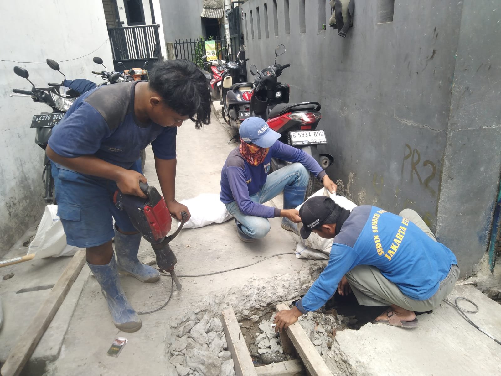 Pendi mengatakan pengerjaannya dilakukan oleh sembilan orang petugas SDA Kecamatan Penjaringan.