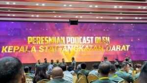 Jakarta | Kepala Staf Angkatan Darat (kasad) Jenderal TNI Maruli Simanjuntak, M.Sc, meresmikan secara virtual studio Podcast untuk empat Kodam yang ditandai dengan penyerahan plakat kepada, Kapendam Iskandar Muda, Kapendam IX/Udayana, Kapendam XIV/Hasanuddin dan Kapendam XVIII/Cendrawasih. Enam studio Podcast lainnya akan segera menyusul beroperasi.