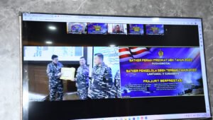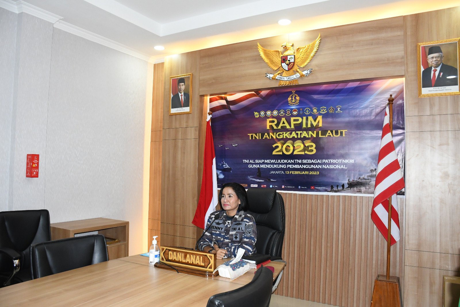 TNI AL, Bandung, 13 Februari 2023,– Komandan Pangkalan TNI Angkatan Laut (Dalanal) Bandung Kolonel Laut (KH/W) Dr. Renny Setiowati, S.T., M.S.C., M.Tr.Hanla., mengikuti Rapim TNI Angkatan Laut Tahun 2023 secara Virtual yang dipimpin langsung oleh Kepala Staf Angkatan Laut (Kasal) Laksamana TNI Muhammad Ali, bertempat di Ruang Rapat Mako Lanal Bandung, Jalan Aria Jipang No. 8, Kota Bandung, Senin (13/02/2023).