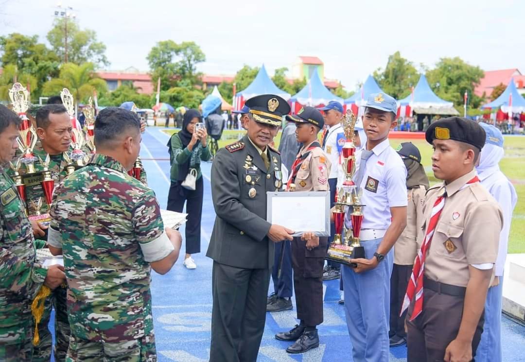 HUT TNI ke 79 Tahun 2024 yang mengusung tema “TNI Bersama Rakyat Siap Mengawal Suksesi Kepemimpinan Nasional untuk Indonesia Maju”. Yang bertindak sebagai Inspektur Upacara yakni Komandan Korem 023/ KS Kolonel Inf Jansen P. Nainggolan, M.Sc dan Komandan Upacara Wakil Komandan Denpom I/2 Sibolga Mayor CPM Lukas.