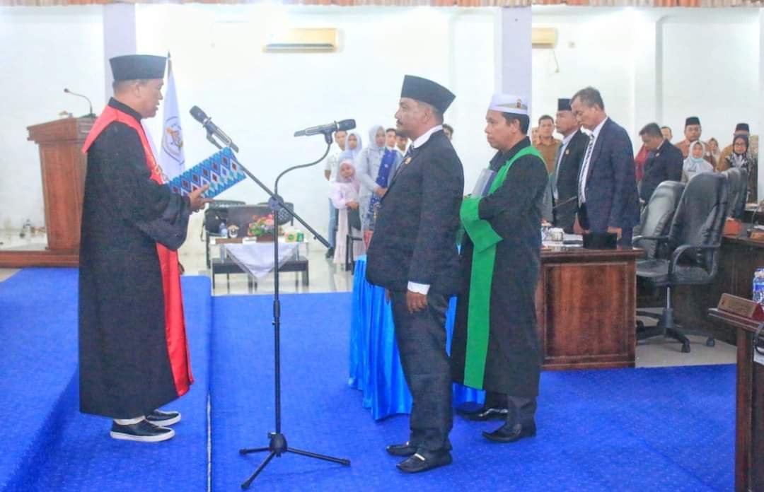 Pelaksanaan Pengucapan Sumpah dan Penandatanganan serta Pemasangan Emblim, Ahmad Rivai Sibarani, sebagai Ketua DPRD Kabupaten Tapteng Pengganti Antar Waktu oleh Ketua Pengadilan Negeri Sibolga, Golom Silitonga, S.H., M.H.