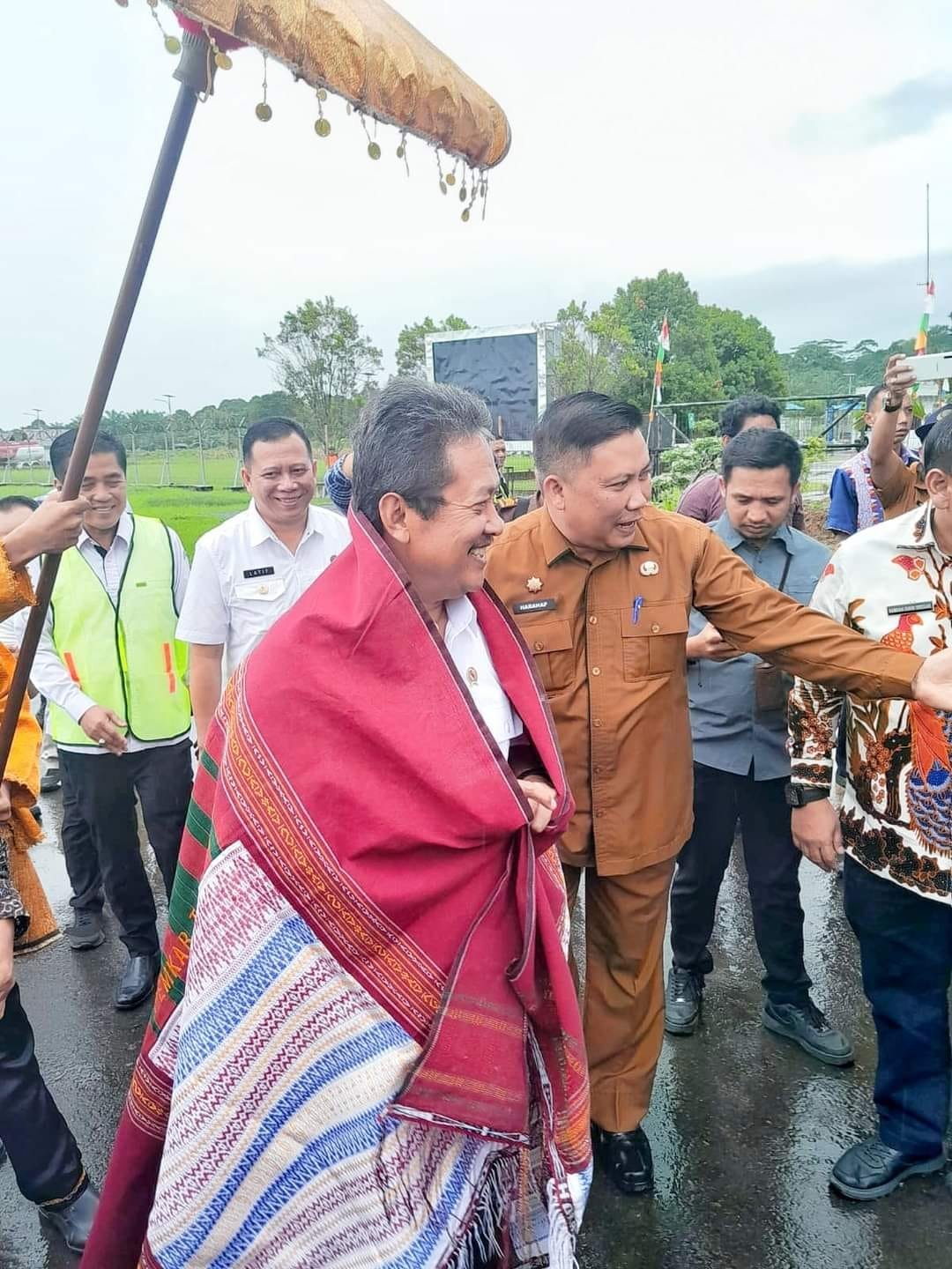 Menteri Kelautan dan Perikanan Republik Indonesia (RI), Ir. Sakti Wahyu Trenggono, M.M., disambut dengan tarian Penyambutan Pesisir dan Penyematan ulos oleh SekdaKab Tapteng.