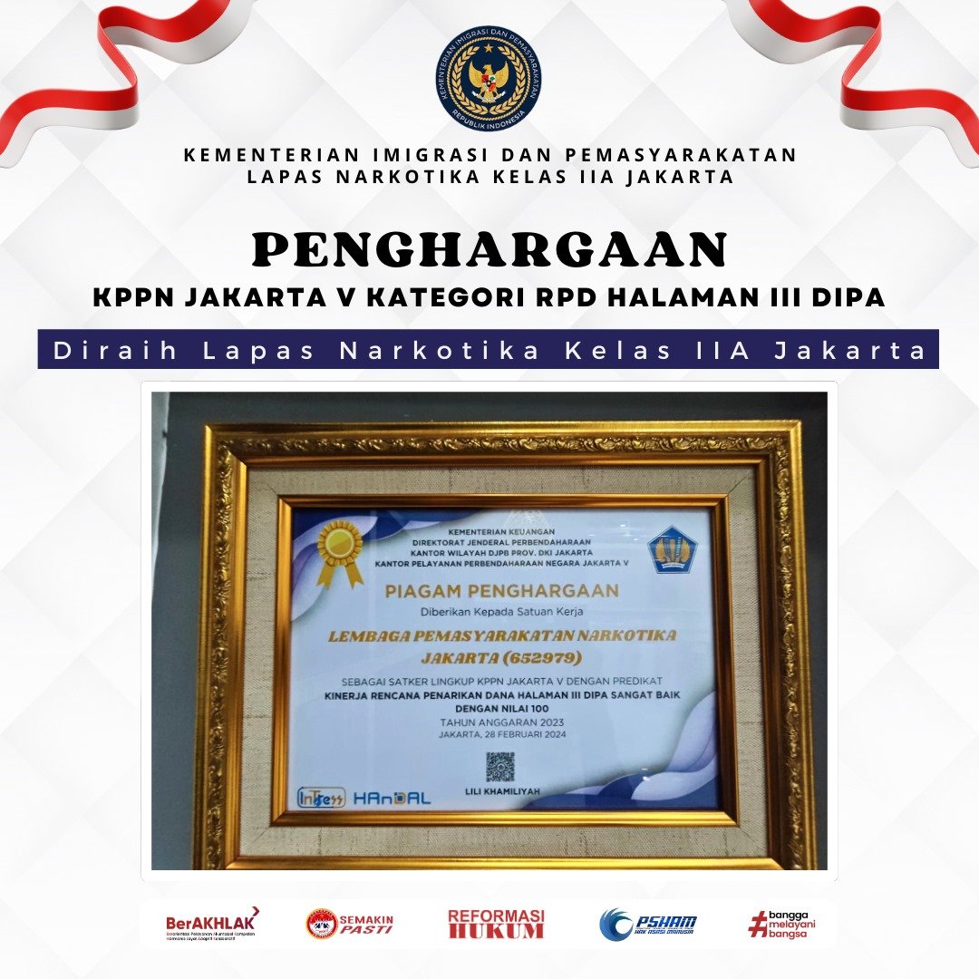 “Penghargaan ini merupakan hasil dari kerja keras seluruh jajaran Lapas Narkotika Jakarta” pungkas Fonika.