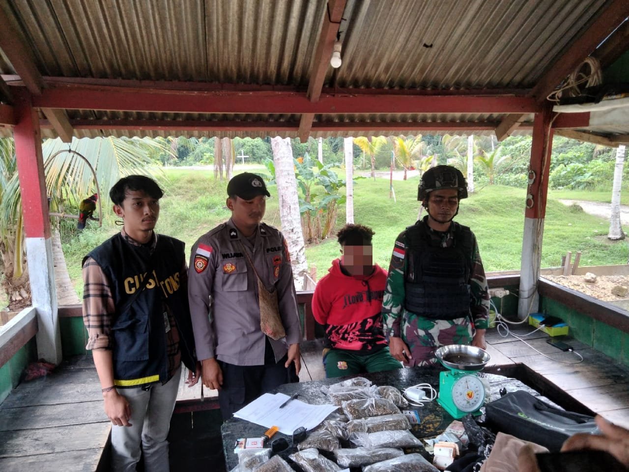 refubliknews.com, – Jayapura – Satgas Yonif 122/TS Kembali berhasil menggagalkan barang ilegal narkotika jenis ganja dengan berat 1.180 (Seribu Seratus Delapan Puluh) gram dan 2 (dua) orang WNA asal PNG berhasil diamankan oleh Satgas Pamtas RI-PNG Yonif/TS pada pukul 12.45 WIT, bertempat di Kampung Mosso, Distrik Muara Tami, Kota Jayapura, Provinsi Papua, Sabtu (27/7/2024)
