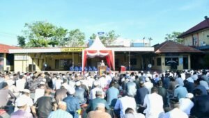 TNI AL, Lanal Banjarmasin,- Komandan Lanal Banjarmasin Kolonel Laut (P) Agus Setyawan, S.H., beserta Keluarga Besar Lanal Banjarmasin dan Crew KRI Tongkol-813 melaksanakan Sholat Idul Fitri 1 Syawal 1444 H/2023 M, bertempat di Lapangan Apel Polresta Banjarmasin, Sabtu (22/4/2023).