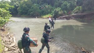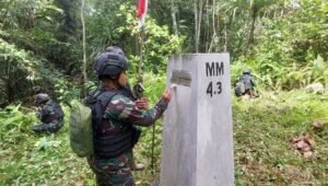Keerom ~ Untuk memastikan patok batas negara RI-PNG dalam keadaan aman, Satgas Yonif 310 KK yang tergabung dalam Kipur (Kompi Tempur) 1 melaksanakan Patroli Patok Perbatasan dengan nomor registrasi MM 4.3 di Distrik Yaffi, Kabupaten Keerom.