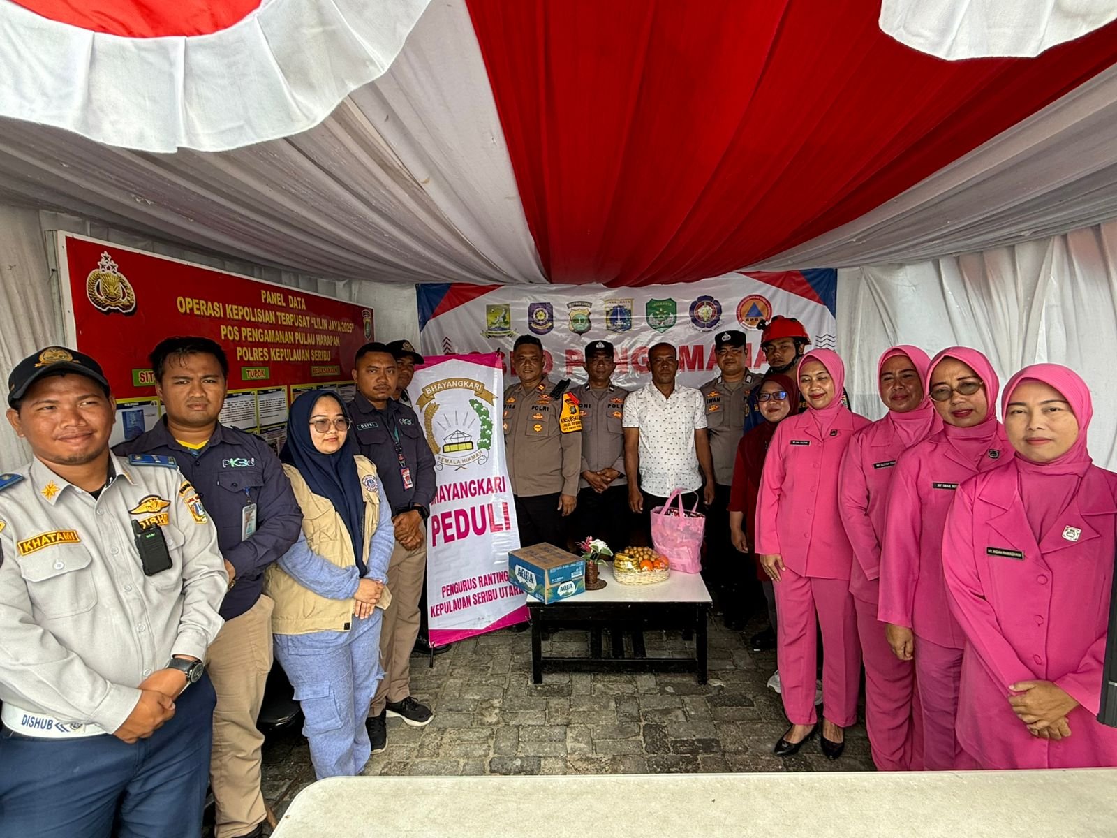 refubliknews.com, || Kepulauan Seribu – Di tengah pelaksanaan Operasi Lilin 2025 dalam rangka pengamanan Natal dan Tahun Baru (Nataru), suasana penuh kehangatan terlihat di Pospam Pulau Harapan, Minggu 28 Desember 2025. Kehadiran para pengurus Bhayangkari Ranting Kepulauan Seribu Utara membawa semangat kebersamaan melalui kegiatan bertajuk Bhayangkari Peduli.