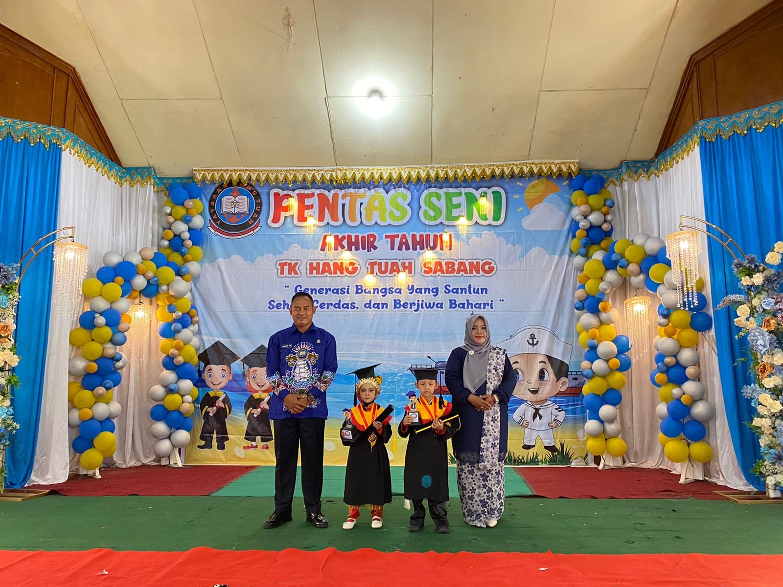Acara diawali dengan Pembacaan Ayat Suci Al-Qur’an, Sholawat Badar, Menyanyikan Lagu Indonesia Raya dan Mars Hang Tuah. Dilanjutkan dengan persembahan berbagai antraksi dan kemampuan peserta didik TK Hang Tuah Sabang yang diperoleh selama menempuh pendidikan selama satu tahun diantaranya, Tari Ranup Lam Puan, Tari Aceh Keneubah Endatu, Dance Ceria Al Susanti, Antraksi Drum Band Cilik, Tari Melayu Bersorak Ria, Dance Ceria DJ Mapopo, serta Hafalan Hadist Anak Soleh dan Soleha.