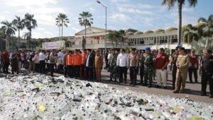 Pemusnahan barang bukti dilakukan secara simbolis oleh jajaran Forkopimda, disaksikan oleh tokoh masyarakat dan elemen terkait.