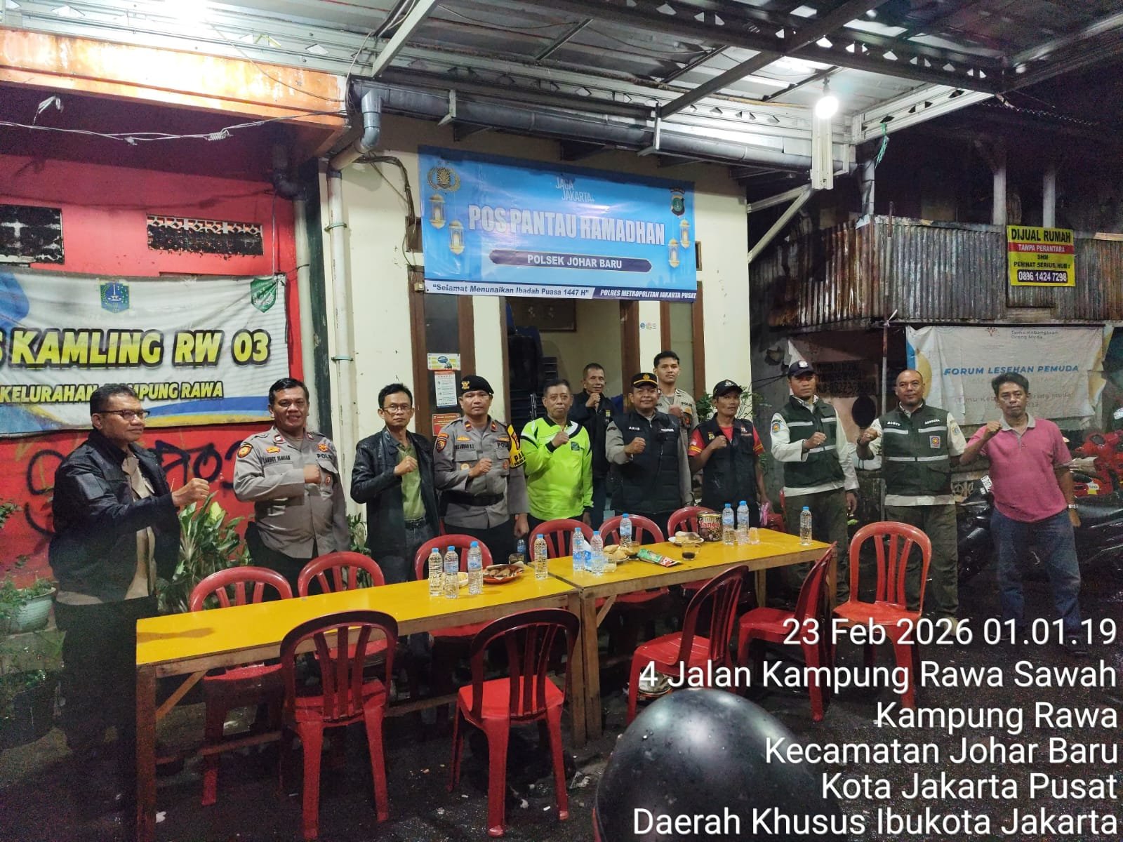 Sementara itu, Kapolsek Johar Baru Kompol Saiful Anwar menyampaikan bahwa sinergitas 3 Pilar terus diperkuat guna mengantisipasi potensi gangguan kamtibmas pada malam hingga dini hari. “Kami terus meningkatkan koordinasi dan pengawasan di setiap Pos Pantau Ramadhan, khususnya pada jam rawan, untuk mencegah tawuran, sahur on the road, maupun gangguan keamanan lainnya,” jelasnya.