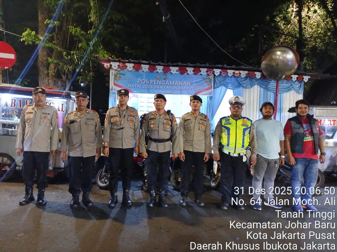 Jakarta Pusat – Menjelang malam pergantian Tahun Baru 2026, jajaran Polsek Johar Baru menggelar apel dan arahan pimpinan (APP) bagi personel pengamanan Natal 2025 dan Tahun Baru 2026 di Pos Pengamanan (Pospam) Kota Paris, Johar Baru, Jakarta Pusat, Rabu (31/12/2025) malam.