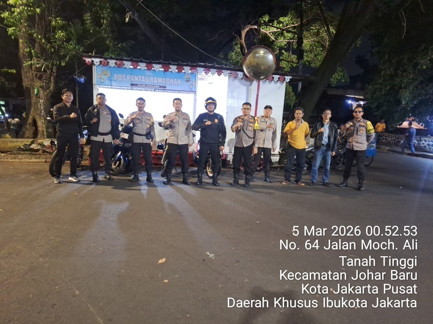 Jakarta Pusat – Dalam rangka menjaga situasi keamanan dan ketertiban masyarakat selama bulan suci Ramadhan 1447 H, jajaran Tiga Pilar Kecamatan Johar Baru melakukan pengecekan Pos Pantau Ramadhan di wilayah Kota Paris, Kelurahan Tanah Tinggi, Jakarta Pusat, Kamis (5/3/2026) dini hari.