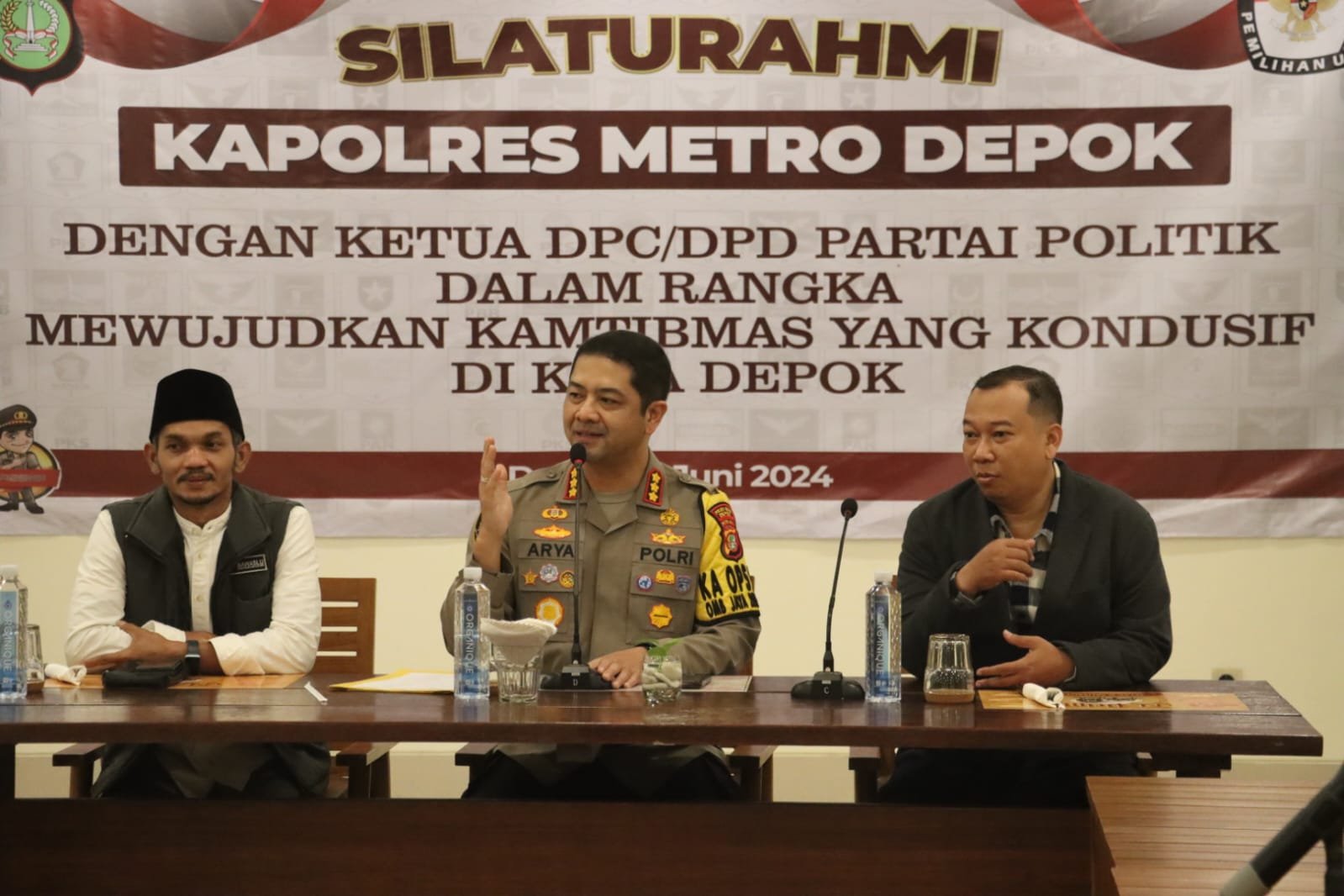 refubliknews.com, – Depok – Kapolres Metro Depok, Kombes Pol. Arya Perdana S.H, S.I.K, M.Si menghadiri acara silaturahmi dengan Dewan Pengurus Cabang (DPC) dan Dewan Pengurus Daerah (DPD) dari berbagai partai politik di Kota Depok.