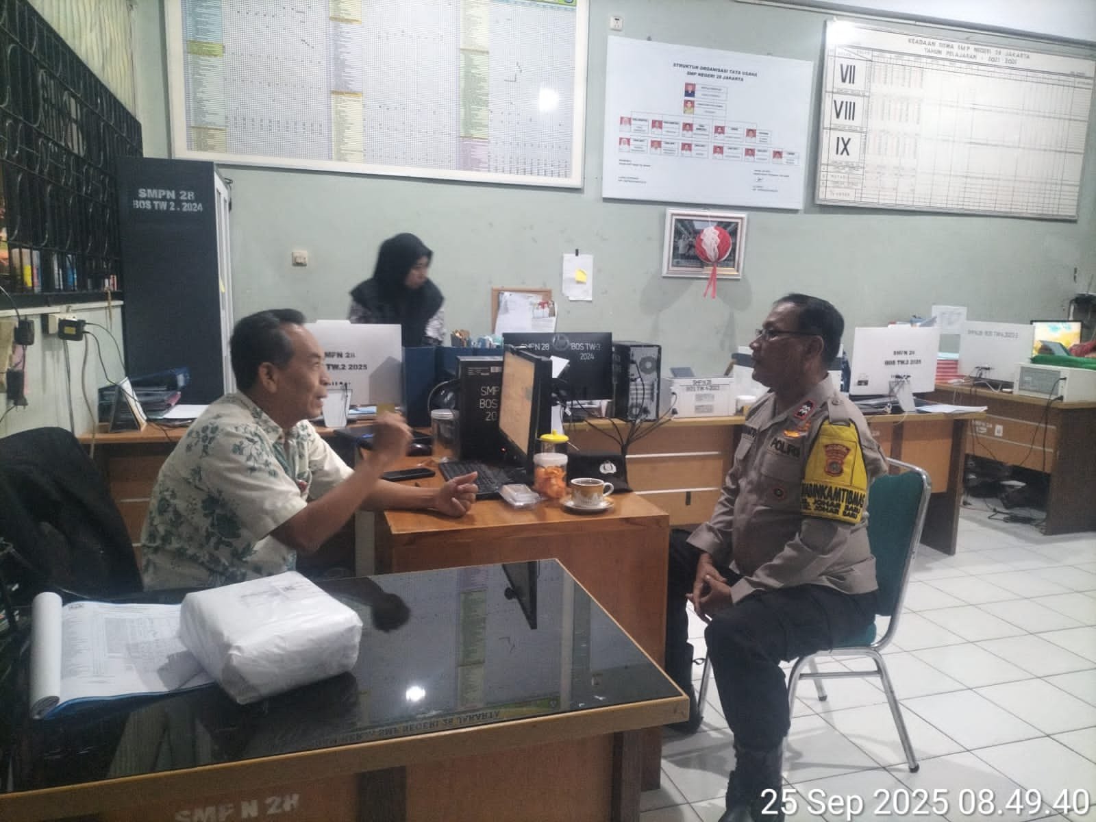 Dalam kunjungan ini, Aiptu Sunarto bertemu dengan salah satu guru, Bapak Sutarno, untuk menyampaikan pesan-pesan kamtibmas kepada para pelajar. Melalui cooling system, patroli, dan monitoring di lingkungan sekolah, Bhabinkamtibmas mengingatkan siswa agar usai jam pelajaran segera pulang ke rumah masing-masing, tidak nongkrong di luar sekolah, serta tidak mudah terprovokasi ajakan tawuran.