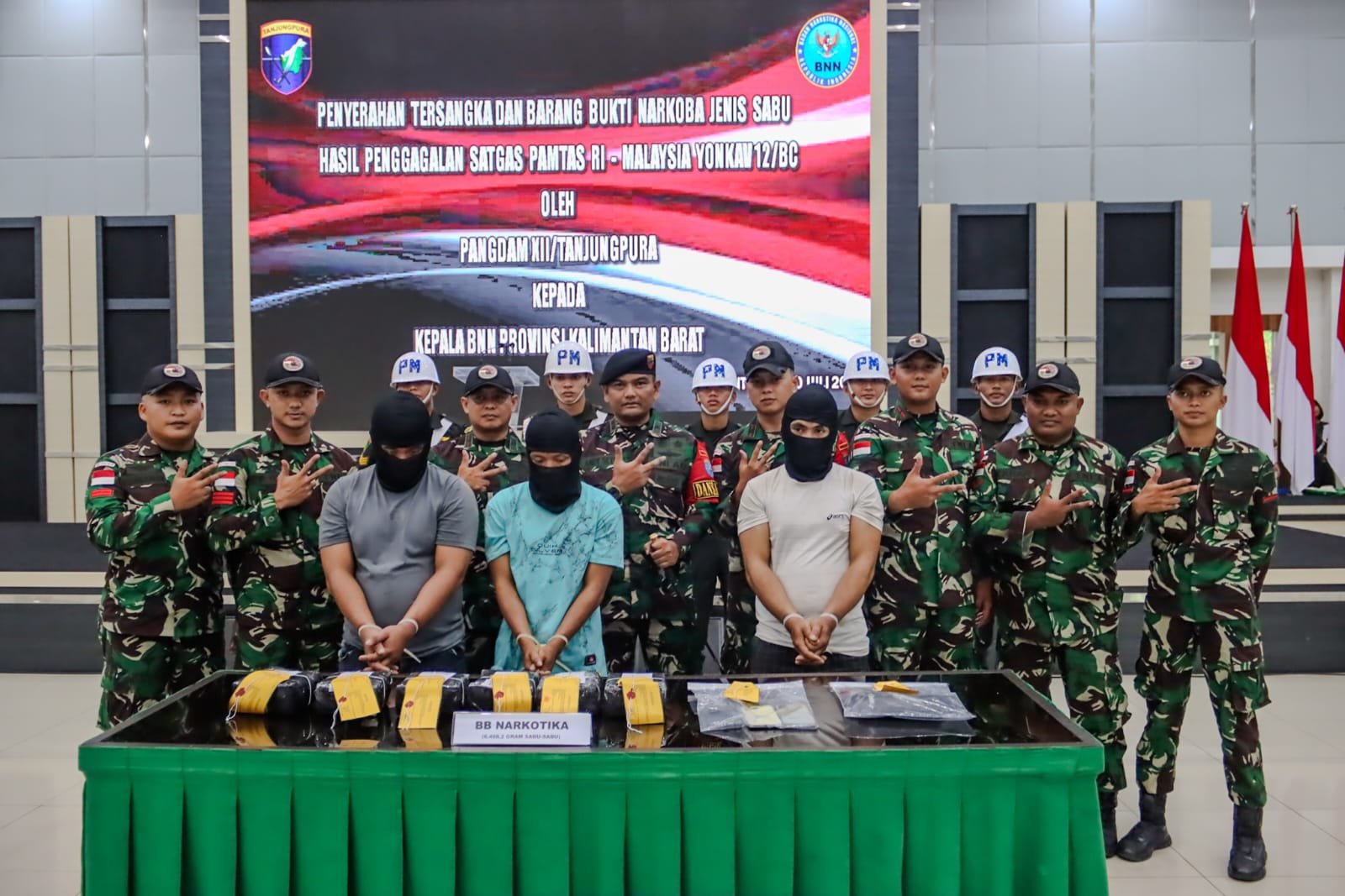 Hari ini barang bukti beserta 3 orang diduga pelaku diserahkan oleh Pangdam XII/Tpr Mayjen TNI Iwan Setiawan kepada Kepala BNNP Kalimantan Barat, Brigjen Pol. Drs. Sumirat Dwiyanto, M.Si., di Aula Sudirman, Makodam XII/Tpr.