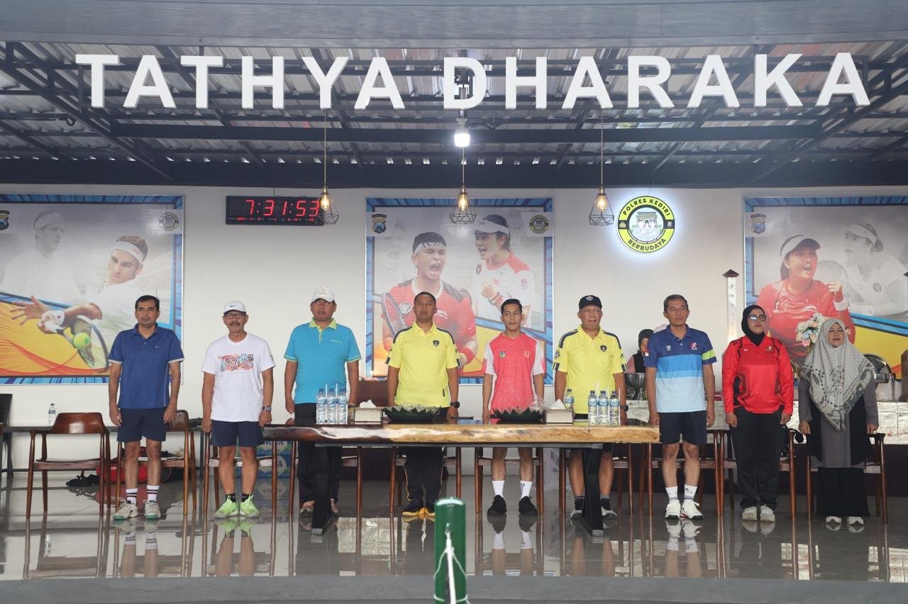 Kapolres Kediri AKBP Bramastyo Priaji, S.H., S.I.K., M.Si., bersama jajaran menggandeng Komite Olahraga Nasional Indonesia (KONI) Kabupaten Kediri dan Paguyuban Tenis Kediri (PTK) dalam kegiatan tenis bersama di Lapangan Tenis Bhayangkara Reborn Polres Kediri.