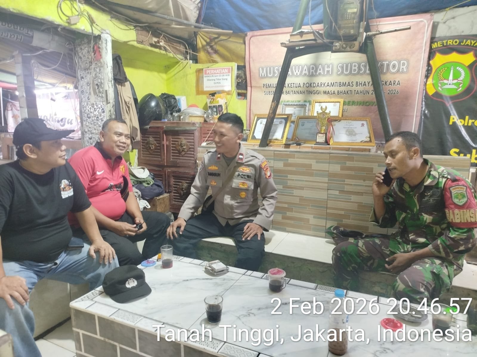 Jakarta Pusat — Sinergi antara Polri dan TNI terus diperkuat dalam menjaga keamanan dan ketertiban masyarakat. Hal tersebut diwujudkan melalui kegiatan patroli dialogis dan sambang Pos Satkamling RW 08 Kelurahan Tanah Tinggi, Kecamatan Johar Baru, Jakarta Pusat, pada Senin (2/2/2026) malam.
