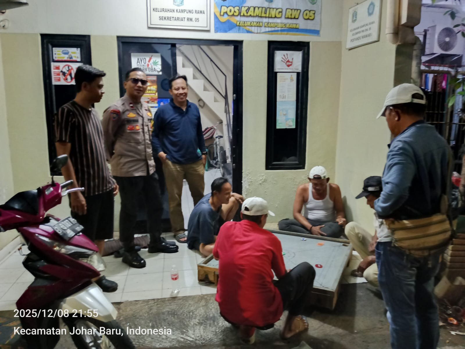 refubliknews.com, || Jakarta Pusat – Bhabinkamtibmas Kelurahan Kampung Rawa, Aipda Ikhwan, melaksanakan patroli wilayah dan sambang ke Pos Satkamling RW05, Jalan Rawa Selatan 2 RT14, Kelurahan Kampung Rawa, Kecamatan Johar Baru. Senin malam, 8 Desember 2025, pukul 21.55 WIB.