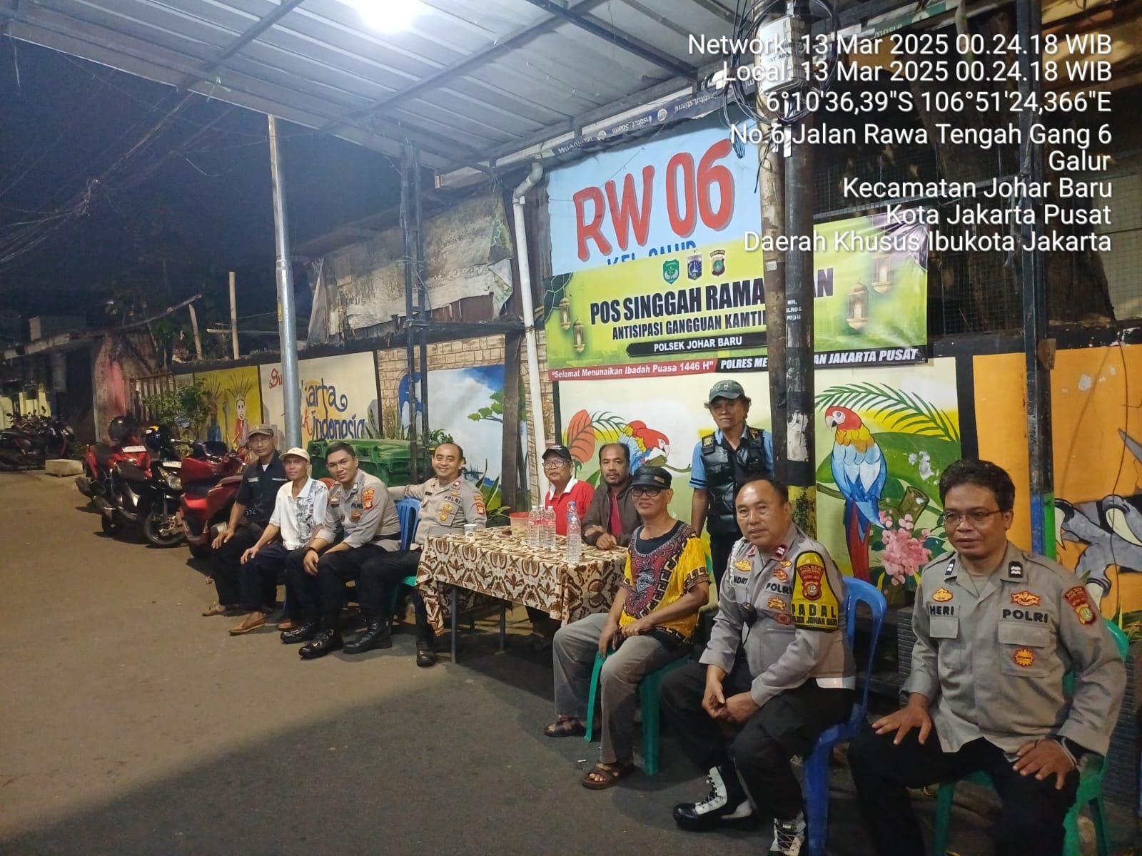 refubliknews.com, – Jakarta Pusat – Dalam rangka menjaga keamanan dan ketertiban selama bulan Ramadhan 1446 H/2025 M, sinergis antara Polsek Johar Baru dan Stakeholder wilayah Kelurahan Galur, terjalin dengan baik melalui kegiatan di Pos Singgah Ramadhan yang bertempat di RW 06 Galur, Jalan Rawa Tengah RT 08 RW 06 Kelurahan Galur, Kecamatan Johar Baru Jakarta Pusat, pada Kamis dini hari (13/03/2025), pukul 00.15 WIB.