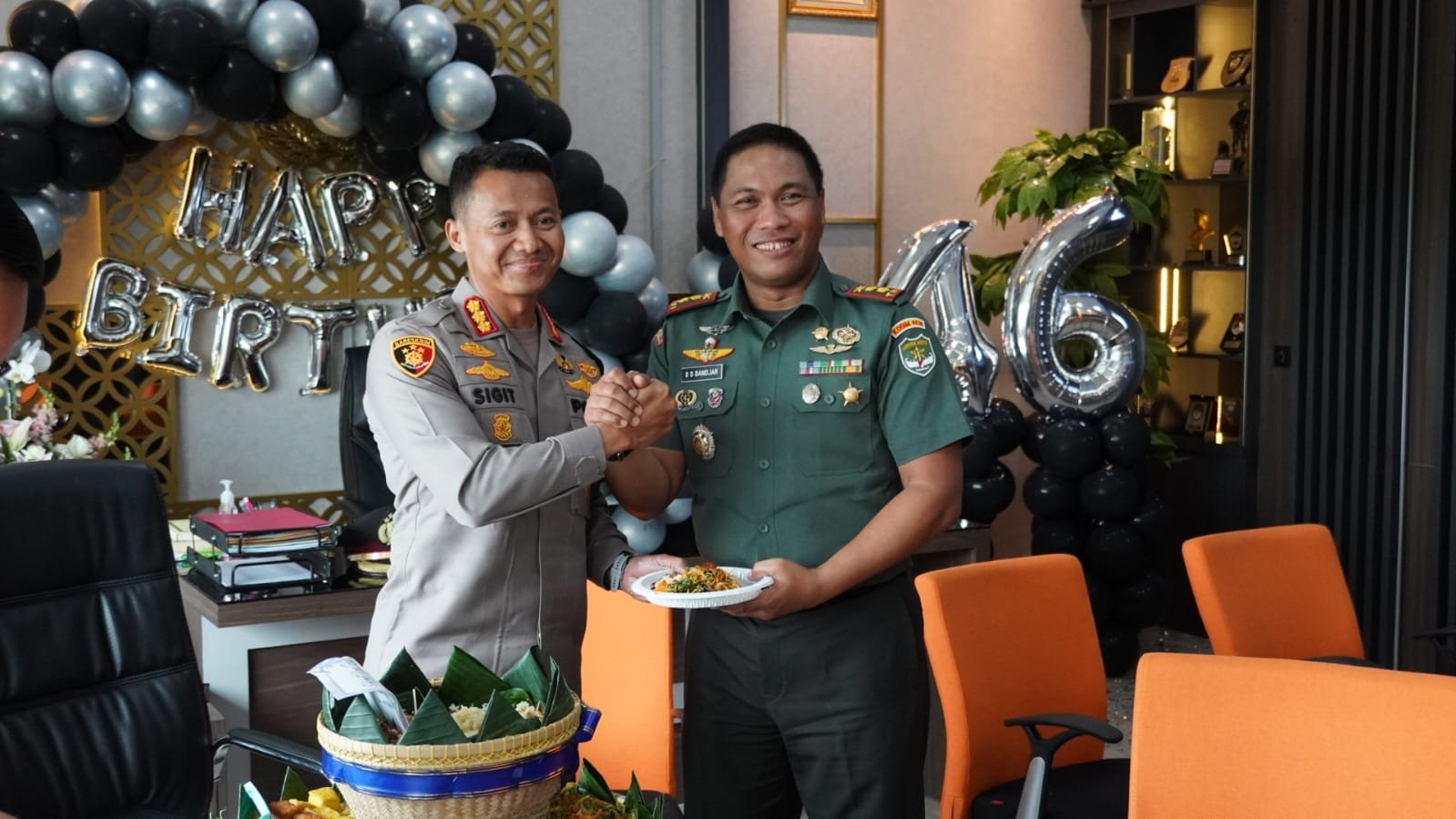 “Kehadiran kita di sini untuk memberikan ucapan selamat ulang tahun kepada Kapolresta Tangerang Dr. Sigit Dany Setiyono, SH., SIK., MSc.Eng yang hari ini memasuki usianya yang ke-46. Acara ini menjadi momentum untuk mempererat silaturahmi serta meningkatkan kolaborasi dan sinergi di masa depan dalam menjaga kondusifitas wilayah Kabupaten Tangerang,” ujar Dandim.