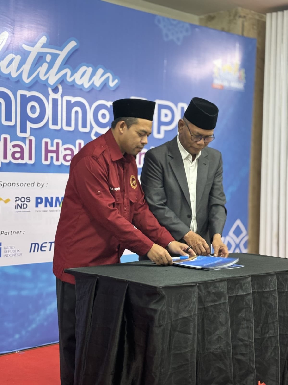 Seremonial Penandatangan Kerjasama dilanjutkan dengan foto bersama serta pemaparan materi dari narasumber yang kredibel selama dua hari. Materi dari Sistem Jaminan Produk Halal, Regulasi Kebijakan Halal serta Tugas dan Fungsi dari LP3H serta Pendamping Halal bagi UMKM. Penyajian materi ini ditujukan sebagai spirit pengurus masjid dalam mendukung percepatan Sertifikat Halal kepada para pelaku usaha.